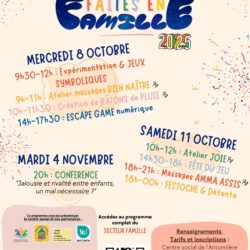 ???????? FAITES EN FAMILLE 2025 ???????? Un programme riche en activités, en découvertes et en moments partagés vous attend à L’Antonnière ! Que vous soyez parents, enfants, grands-parents ou tout simplement curieux, venez vivre des instants complices autour de jeux, d’ateliers bien-être, de conférences et de festivités ? ? Mercredi 8 octobre ? Jeux symboliques, Read more about FAITES EN FAMILLE 2025[…]
