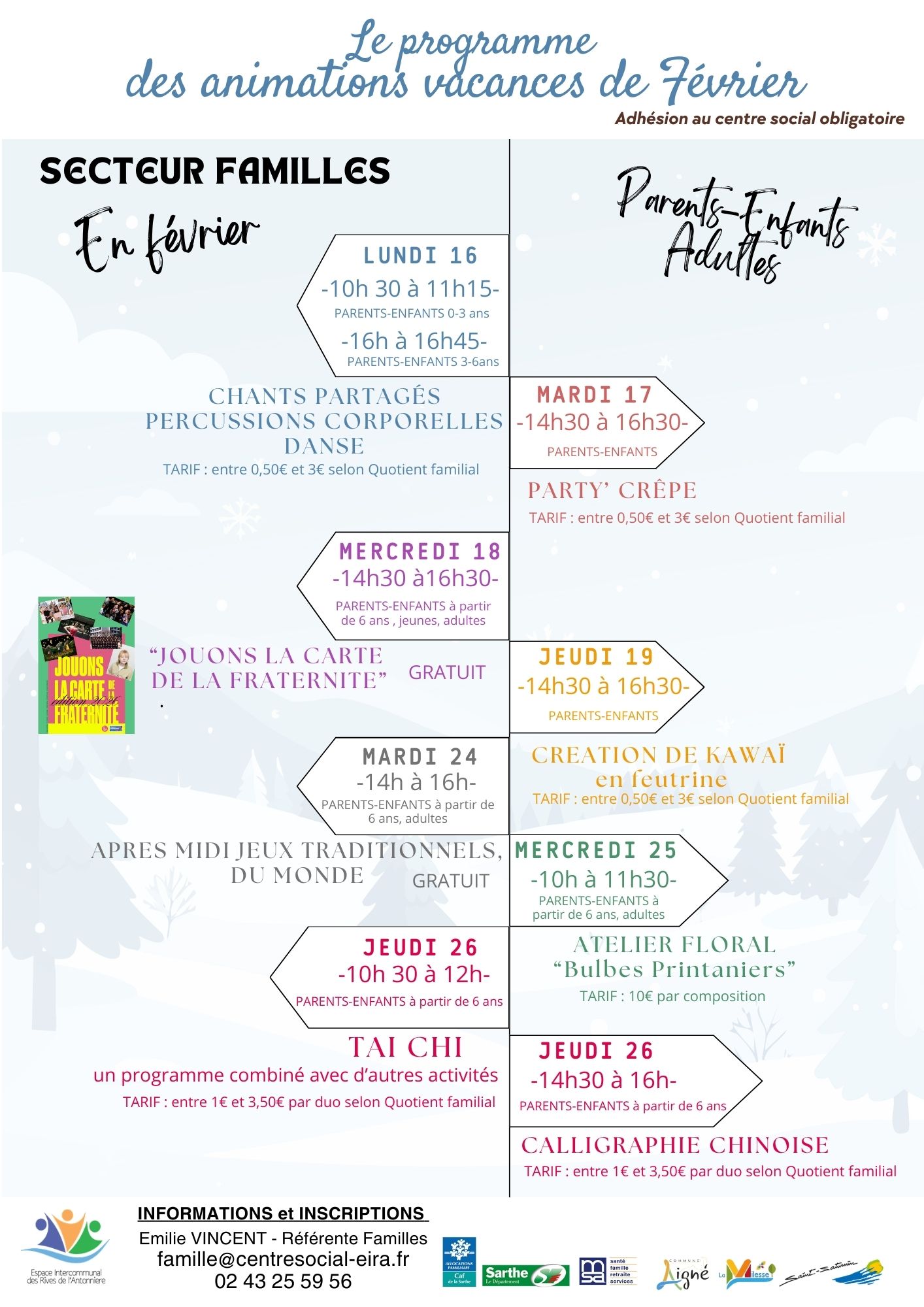 Programme des vacances de février au SECTEUR FAMILLES
