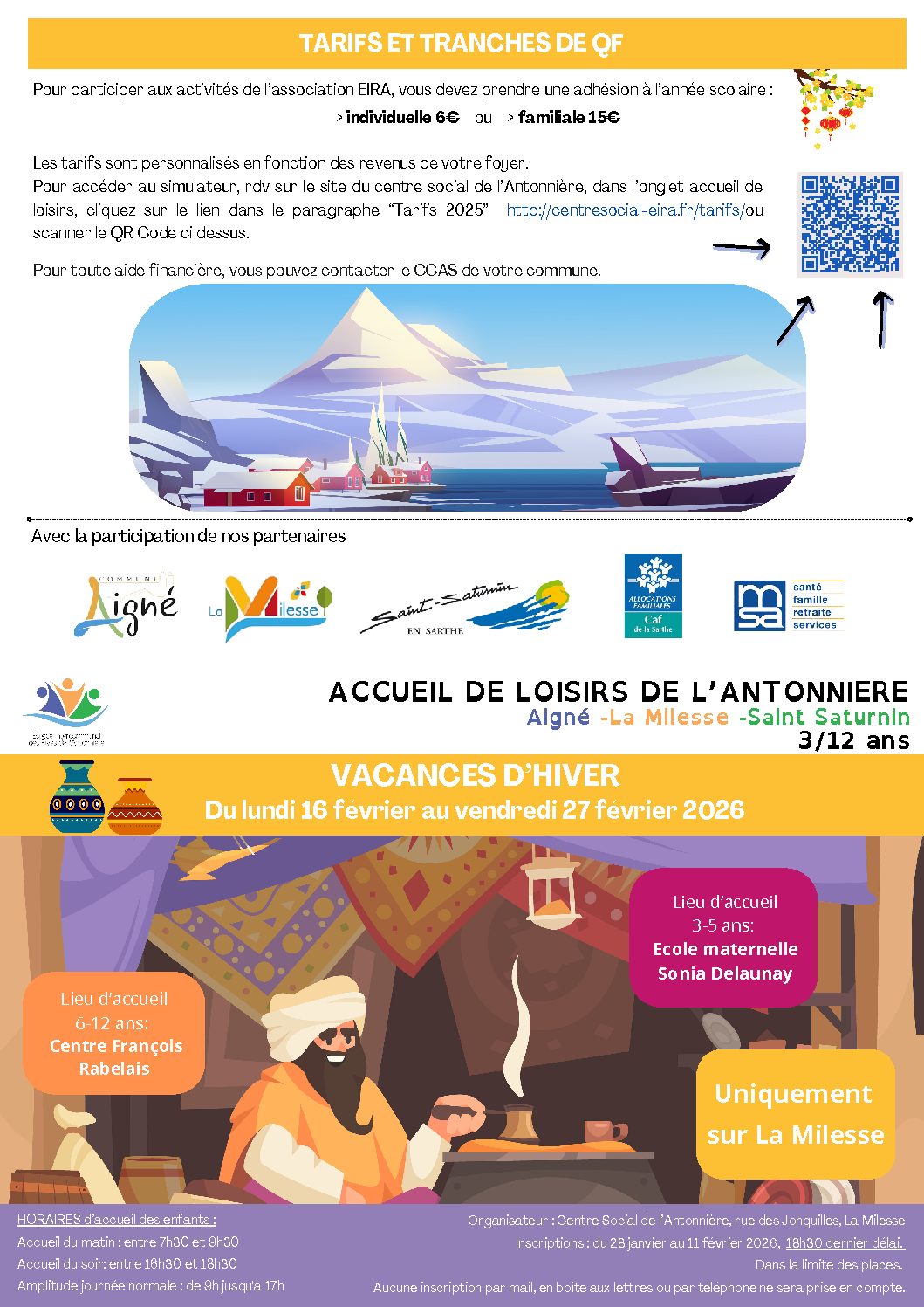 Le programme et la grille d’inscription des mercredis de janv fev 2026, sont disponibles dans l’onglet accueil de loisirs.